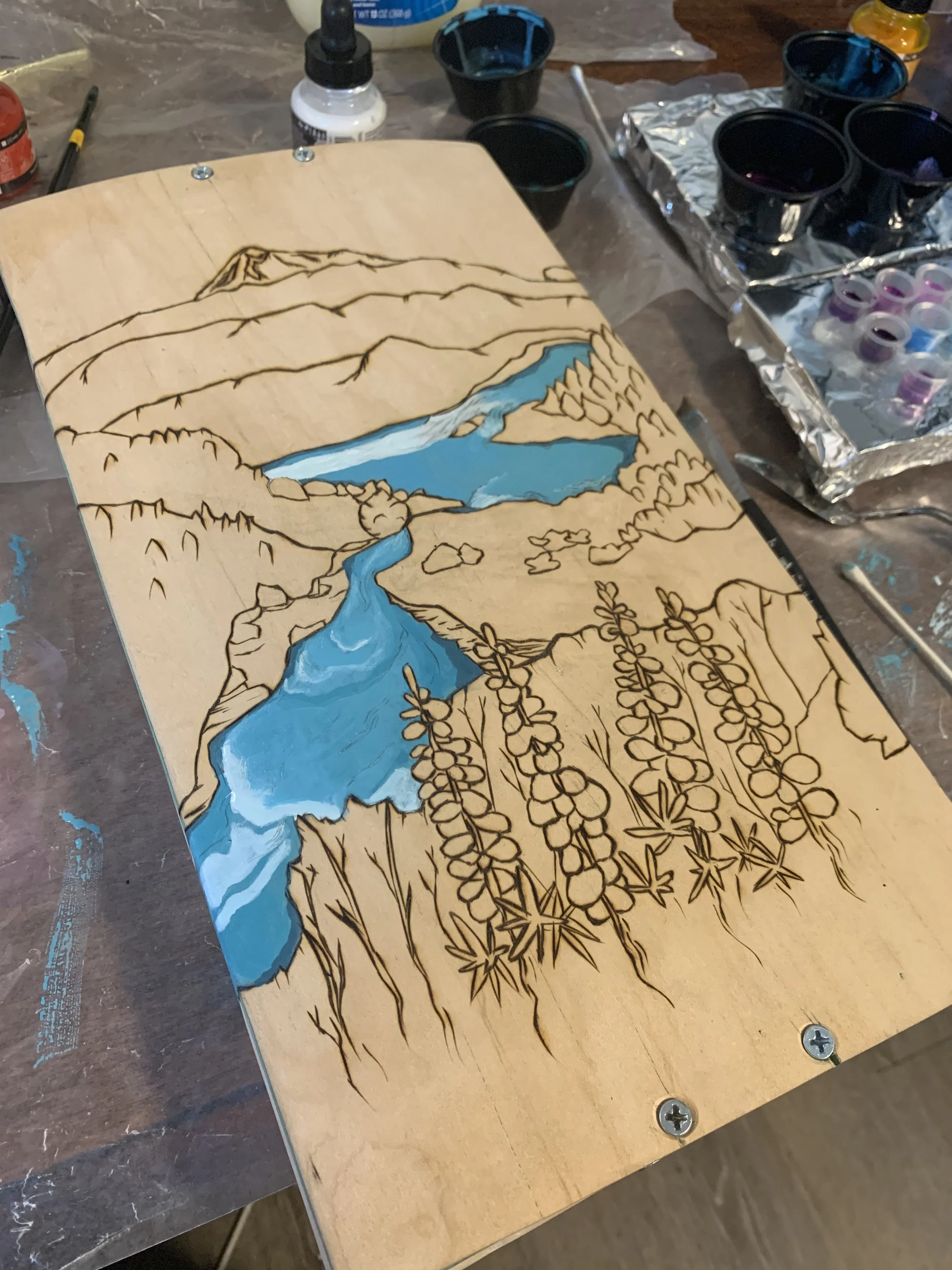 Custom Cribbage boards, complex skate deck art, large wooden canvas work, home furnishings