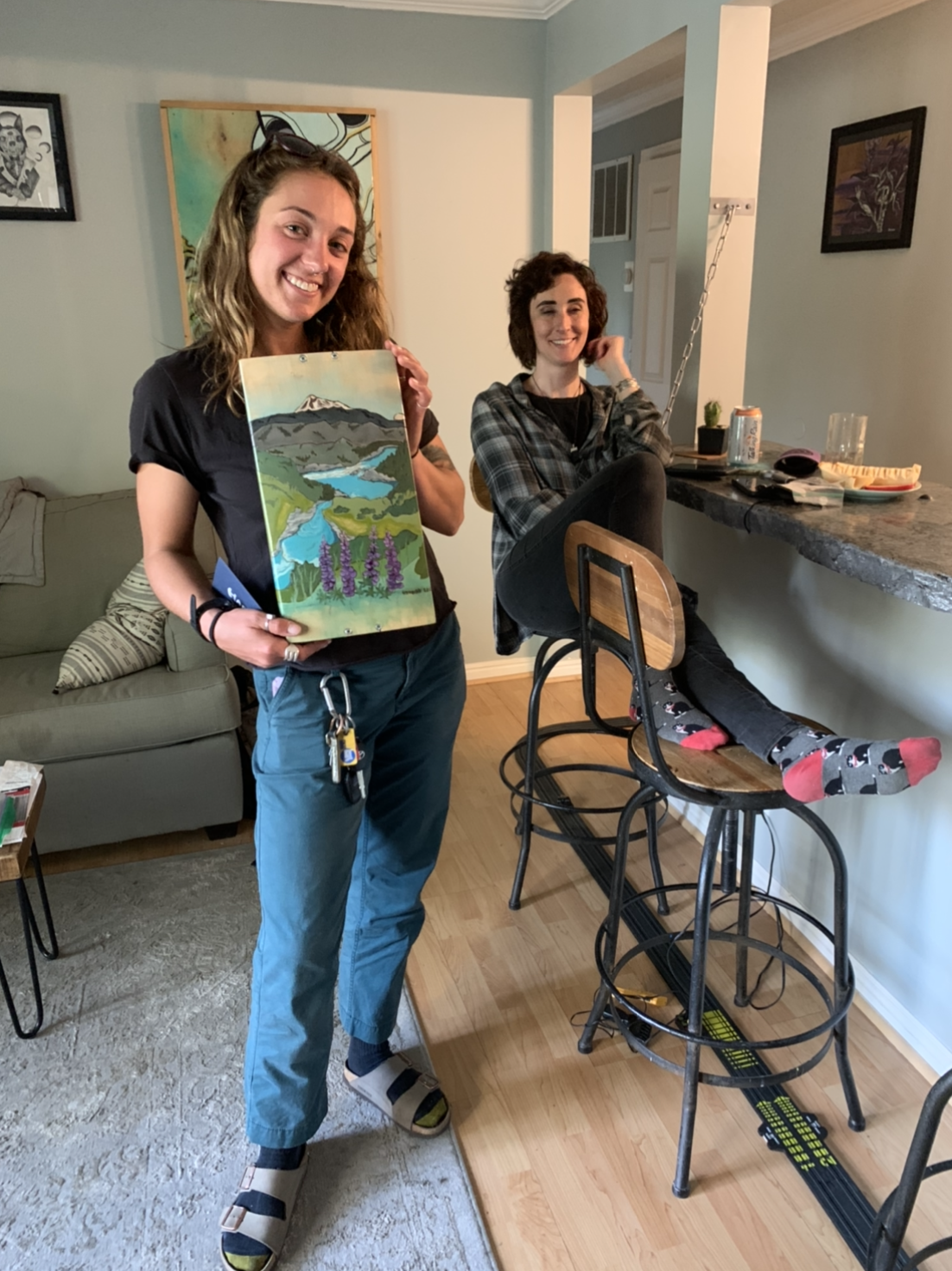 Do you know exactly what you want? Send me pictures and let me know what medium you’d like me to work with. This painting is based off a photo and made on a juniper wood round. It has a picture hook for hanging on the backside, and I put a small spacer on the bottom so it sits level with the wall. Something like this costs between $75-$150.